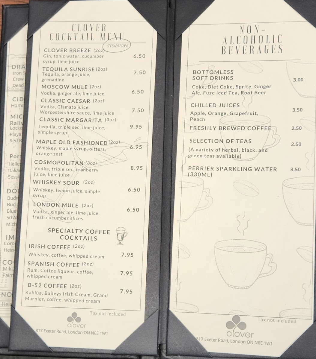 Clover Restaurant & Bar Menu